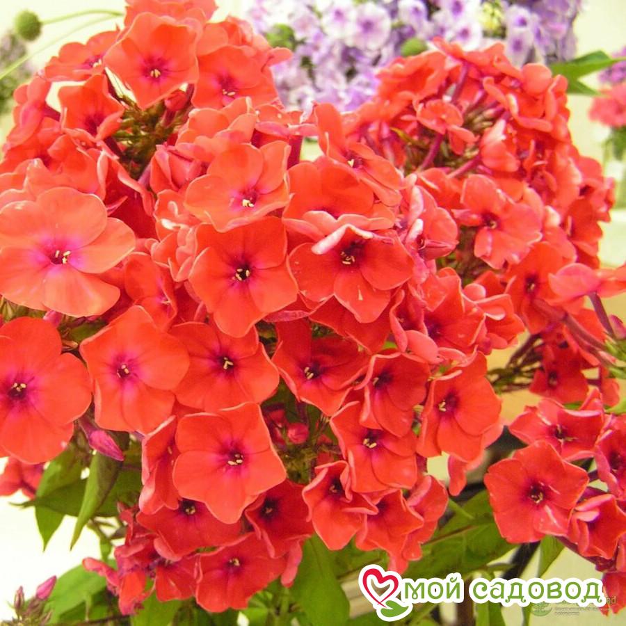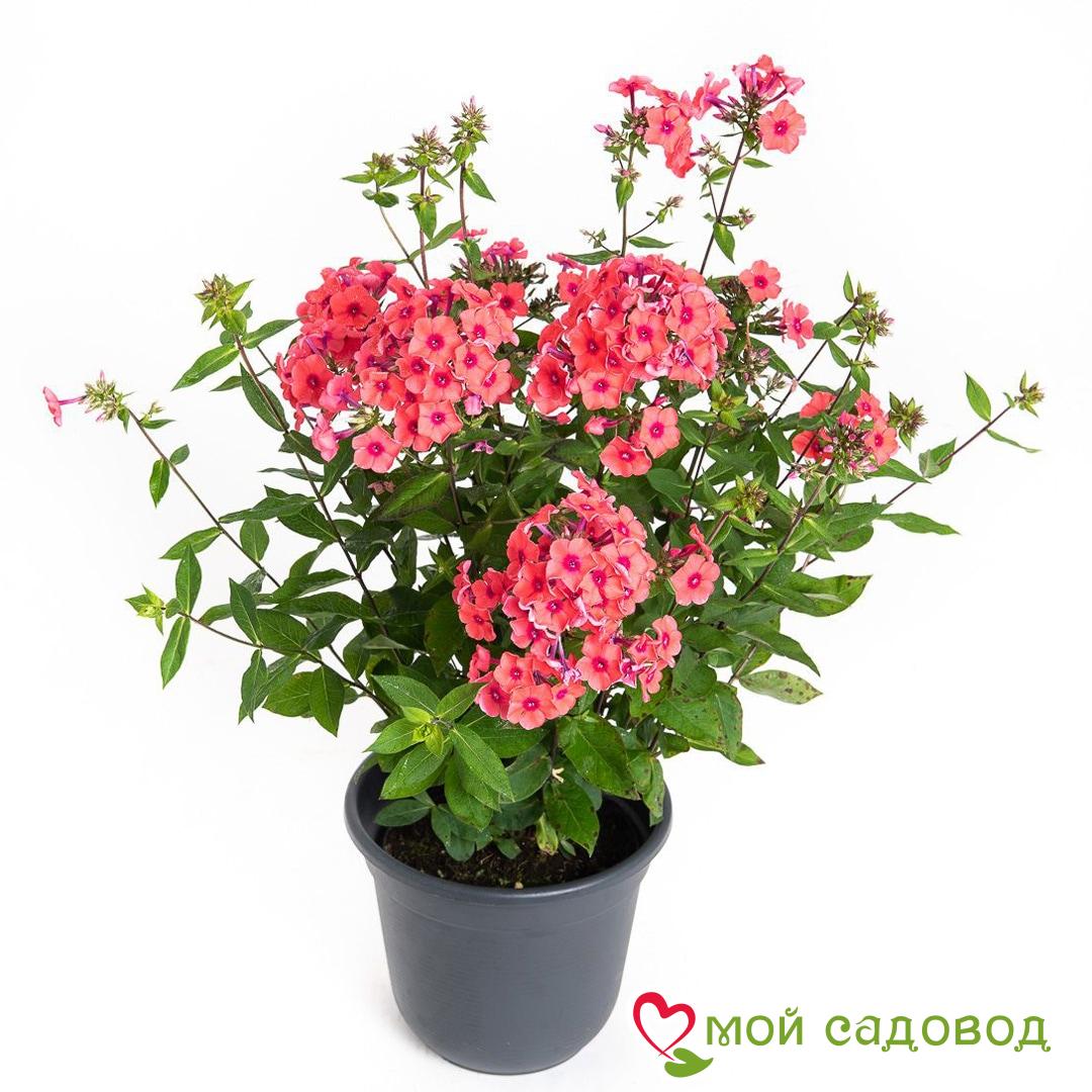 Душистые гроздья соцветий лососево-оранжевого цвета с маленькой бордовой серединкой полностью соответствуют своему названию Оранж Перфекшен – солнечно-оранжевое совершенство. Несомненно, эти яркие цветы, благодаря контрасту с зеленью листьев, привлекут к себе внимание и станут ярким украшением в любом саду. Orange Perfection цветет довольно продолжительно в июле-августе. Купить саженцы флокса Оранж Перфекшен стоит для оформления миксбордеров и цветников, сорт великолепно смотрится рядом с монардами, тысячелистниками, дельфиниумами, лилейниками. Сорт неприхотлив и морозостоек, на зиму побеги обрезают на высоту 10 см. Как выглядит растение? Куст прямостоячий, густо облиственный, высотой до 100 см. Растение способно стремительно разрастаться. Побеги прочные, но под весом раскрывающихся соцветий слегка поникают. Цветение начинается в конце июля — первой половине августа. Окраска бутонов необычная – пурпурно-коричневая. Распустившиеся цветки белоснежные, а трубка розового цвета. Вместе они образуют крупное соцветие пирамидальной формы. Применение в ландшафтном дизайне Сорт выращивают на втором плане клумб и миксбордеров. Многолетник хорошо сочетается с лилиями, лилейниками и древовидными пионами с темной окраской лепестков. Флористы добавляют цветок в букетные композиции. Советы по посадке и выращиванию Для растения подходит как солнечно, так и слега затененное место. Жизнь хрупких цветков можно продлить, если обеспечить им защиту от резких порывов ветра. Декоративные качества многолетника раскрываются лучшим образом в плодородной, рыхлой и умеренно влажной земле. При посадке важно, чтобы почки находились на 2 см ниже уровня поверхности грунта. Лунки готовят размером 30 х 30 см. Внутрь насыпают компост, торф и песок. В слишком легкую почву добавляют глину – она поможет удерживать влагу. Корни саженца расправляют и засыпают почвосмесью. Купить недорого флоксы можно в интернет-магазине «Мой садовод». Просто отправьте понравившийся сорт в корзину, нажав на соответствующую кнопку. Мы бережно упакуем и максимально быстро доставим Вашу покупку ТК СДЭК или почтой России. Если возникнут вопросы или сложности с оформлением заказа, наши консультанты предоставят квалифицированную помощь. Мы гарантируем высокое качество посадочного материала и дорожим мнением каждого покупателя!